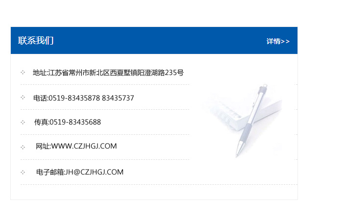 地址:常州市新北區友邦商務大廈1幢16、17層  電話:0519-85101652  傳真:0519-85112595  郵編:213022  網址:www_cz-jiayue_cn.cyhongfengye.com  郵箱:xiajifengaa@163.com